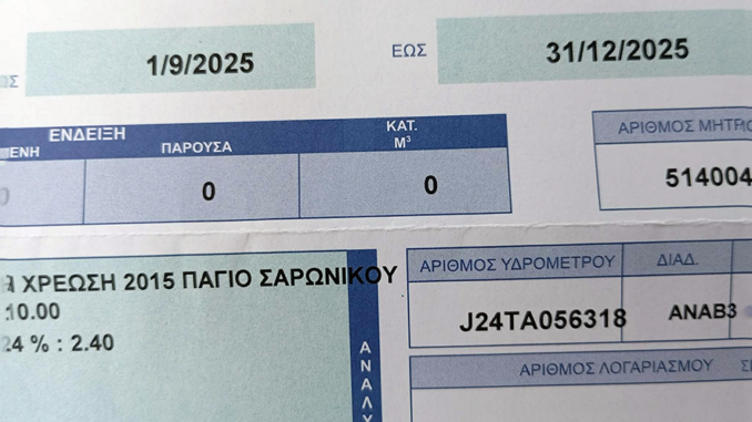 Για δεύτερο συνεχόμενο τετράμηνο, μετά τον υποτιθέμενο «εκσυγχρονισμό» του υδρομέτρου, ο λογαριασμός ύδρευσης περιλαμβάνει μόνο την πάγια χρέωση. Καμία κατανάλωση, καμία εξήγηση, καμία ενημέρωση.